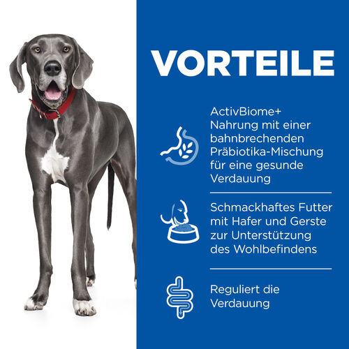 Hill's Adult Perfect Digestion Large mit Huhn und braunem Reis Hundefutter ist ein komplettes Futter für erwachsene Hunde (1-5 Jahre) großer Rassen (>25 kg). Die Vorteile: