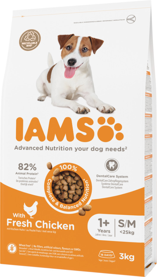 Iams for Vitality Adult kleine & mittelgroße Rassen Hundefutter ist ein 100% vollwertiges Futter für Hunde zwischen 1 und 8 Jahren kleiner und mittelgroßer Rassen.