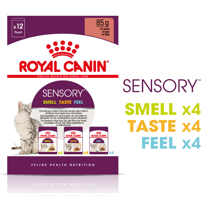 Royal Canin Sensory Multipack Katzen-Nassfutter (12 Beutel x 85 Gramm) ist eine Kombi-Packung aus drei Varianten der Produktlinie Royal Canin Sensory.