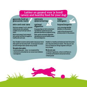 Suchen Sie eine andere Geschmacksrichtung der Smølke Sensitive Produktlinie? Wir haben zum Beispiel auch das Smølke Sensitive Lamm Trockenfutter in unserem Sortiment. Suchen Sie ein anderes Hundefutter? Stöbern Sie doch einfach auf unserer Übersichtsseite für Marken-Hundefutter.