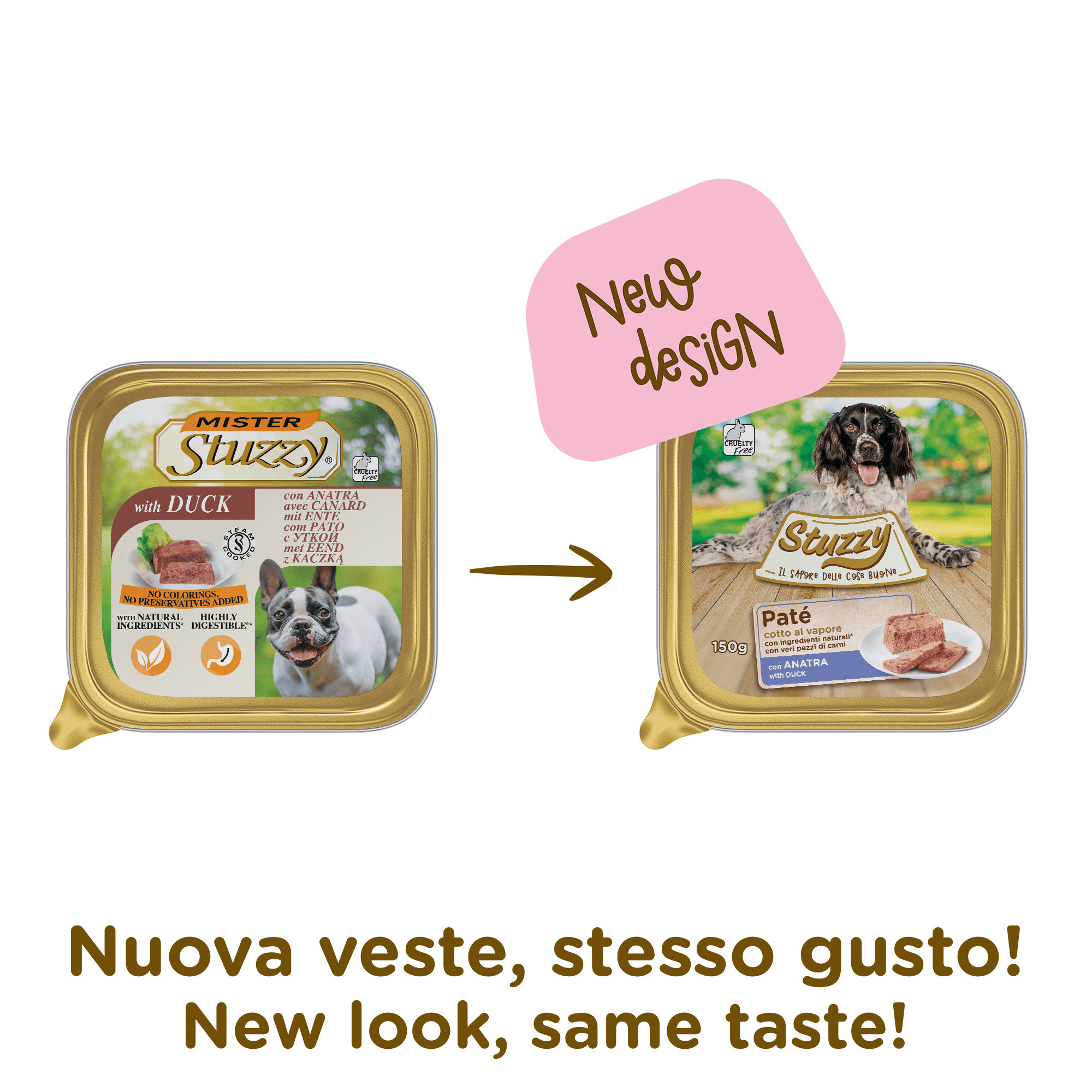 Stuzzy Pastete mit Ente Hundefutter 150g ist eine komplette gedünstete Mahlzeit für ausgewachsene Hunde mit dem köstlichen Geschmack von Ente.