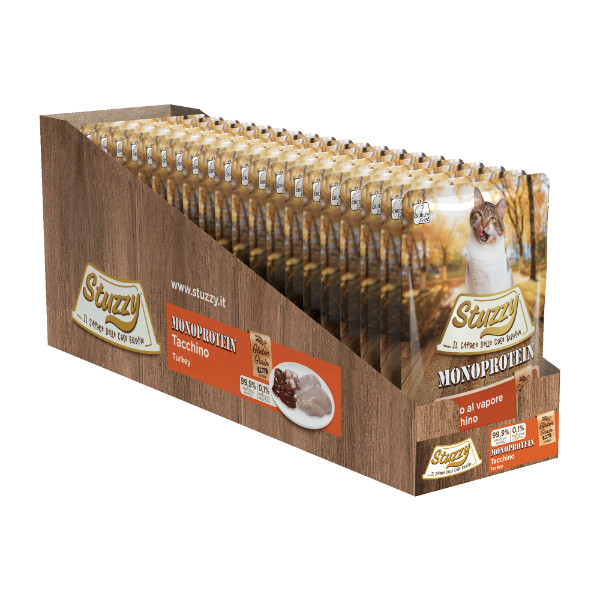 Stuzzy Cat Grain Free Monoprotein Pute Katzen-Nassfutter (85 g) ist ein getreide- und glutenfreies Futter für ausgewachsene Katzen und enthält alle notwendigen Vitamine und Mineralstoffe. Die gesunden und einfachen Zutaten in diesem Alleinfutter liefern alle Nährstoffe, die Ihre Katze für ein gesundes Leben braucht. Stuzzy Cat Grain Free Monoprotein ist frei von Antibiotika, Hormonen, Farb- und Konservierungsmitteln. Das Futter enthält Pute als Hauptbestandteil und einzige tierische Proteinquelle. Dadurch ist die Nahrung hochverdaulich. Damit jeder Tag ein Fest bleibt, hat Stuzzy mehrere leckere andere Monoprotein-Geschmacksrichtungen auf den Markt gebracht.