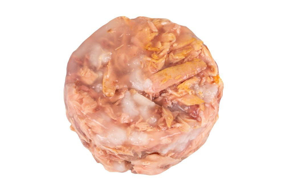 Zusammensetzung: Thunfisch 51%, Garnelen 6%, Reis 1,5%, pflanzliche Gelatine 0,75%.
