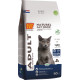 Composition : maïs, riz, poulet séché, graisse de volaille, orge, poisson séché, lignocellulose, levure de bière, poudre d'oeuf, canard séché, saumon séché, graines de lin, huile de saumon, inuline (source de FOS), chondroïtine, glucosamine.