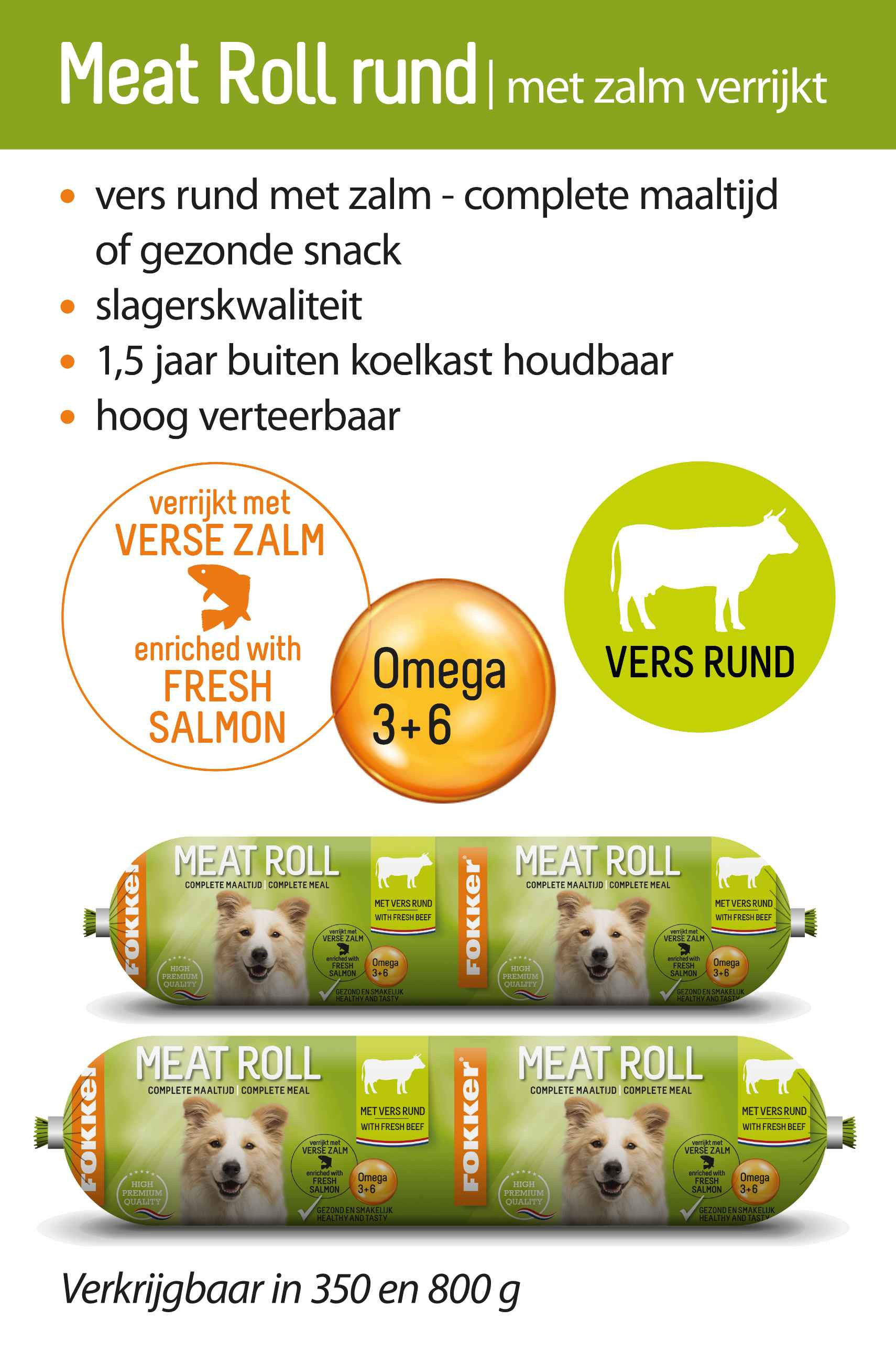 Informations sur Fokker Meat Roll au poulet, bœuf et saumon pour chiens