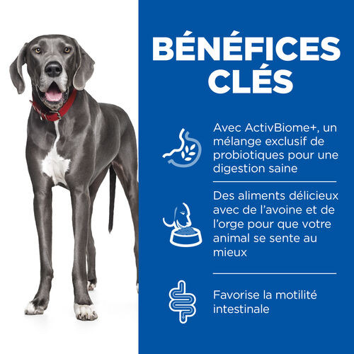 Hill's Adult Perfect Digestion Large au poulet & riz brun pour chien est un aliment complet pour les chiens adultes de grande race âgés de 1 à 5 ans ( >25 kg).