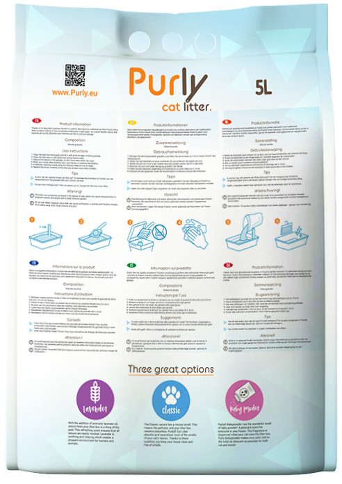 Recherchez-vous un autre produit de la marque Purly ? Brekz vous propose une autre variante délicieusement parfumée de la marque Purly : Purly Lavender litière de silice pour chat, ainsi qu'une variante au parfum neutre : Purly Classic litière de silice pour chat. Bien sûr, vous pouvez également découvrir notre gamme particulièrement complète de litières pour chat en cliquant sur Litière.