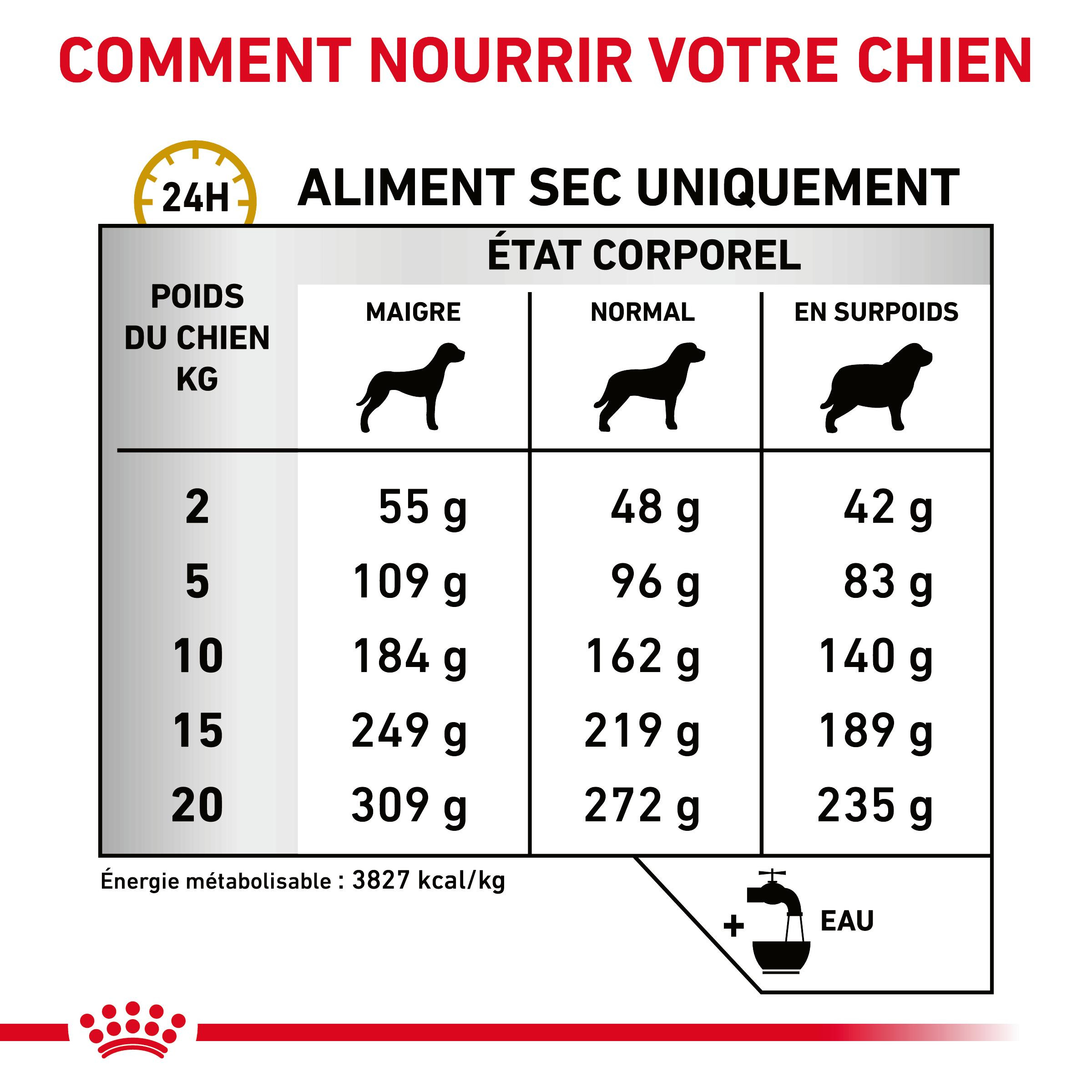 Poinds adulte du chien Maigre Poids optimal En surpoids