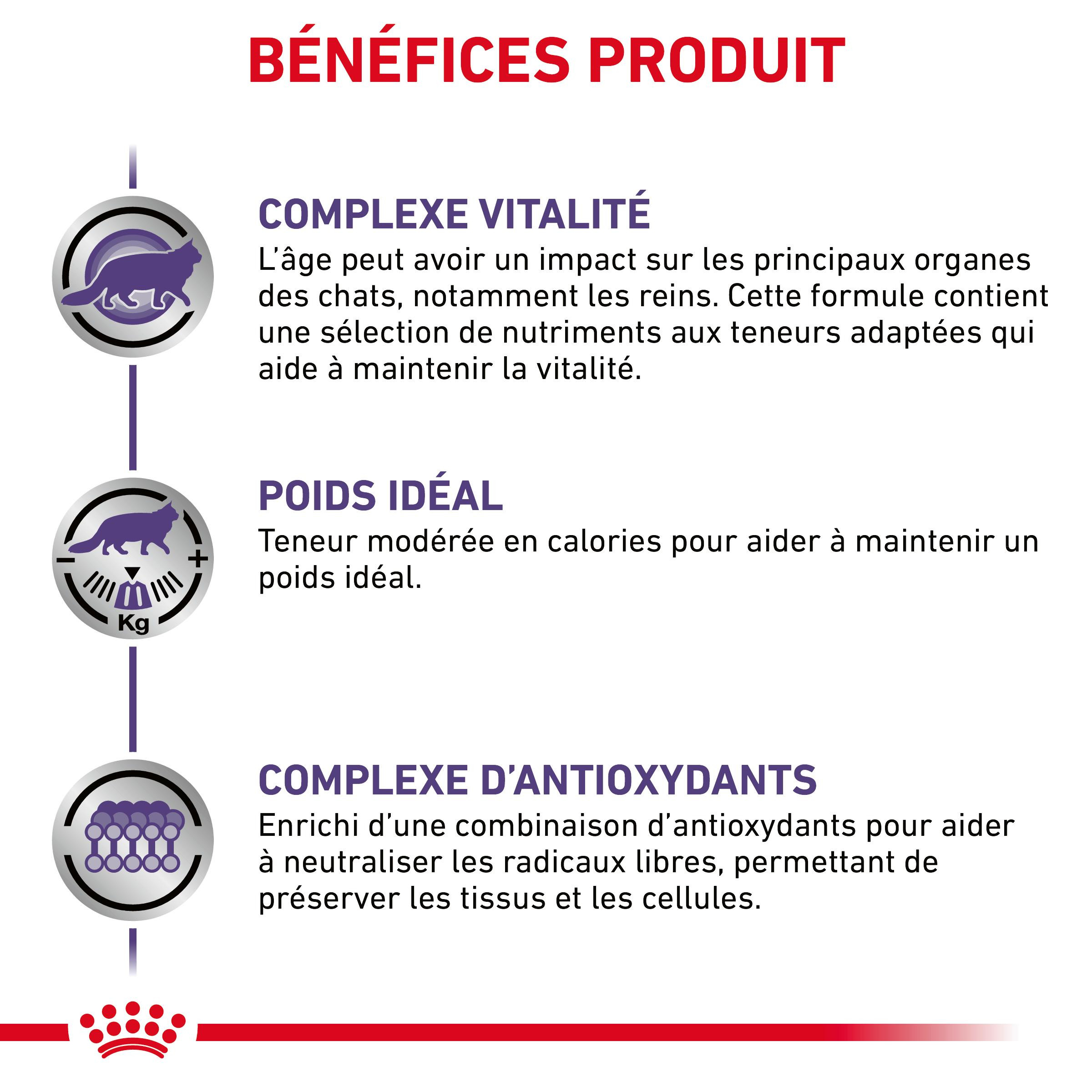 Royal Canin Expert Mature Consult Balance pâtée pour chat (en sachets de 85 grammes) est un aliment savoureux pour les chats âgés et actifs (à partir de l'âge de 7 ans). L'âge peut affecter les systèmes vitaux de votre chat, comme par exemple la fonction rénale. Cet aliment contient des nutriments qui soutiennent la vitalité de votre chat âgé. La teneur énergétique adaptée aide à maintenir un poids corporel idéal. En outre, cet aliment est enrichi d'un mélange d'antioxydants qui aident à neutraliser les radicaux libres pour protéger les tissus et les cellules.