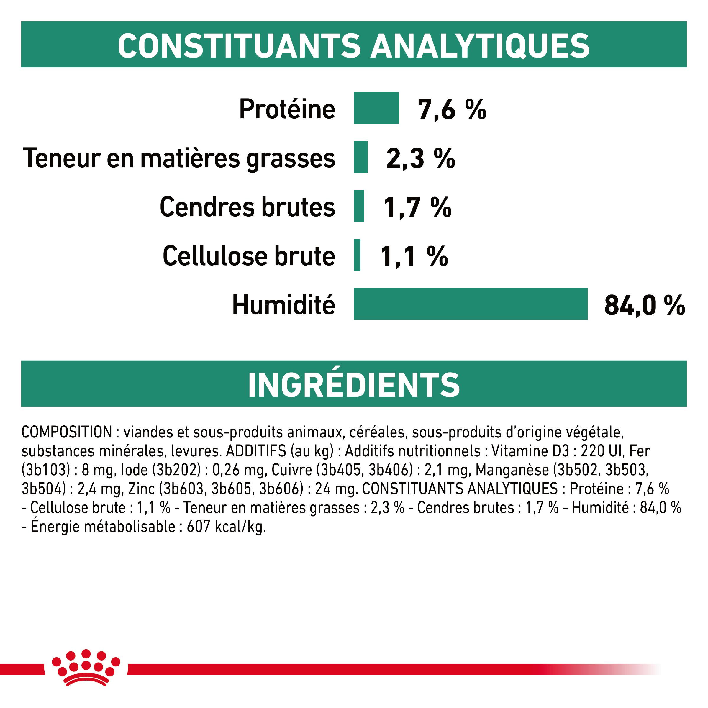 Comme il s'agit d'un aliment diététique Royal Canin, il est important de ne le donner à votre animal que si votre vétérinaire vous l'a recommandé. Si vous passez à cet aliment, faites-le progressivement sur une période de 7 jours. Pesez soigneusement chaque jour la quantité appropriée, surtout si vous combinez des croquettes et des pâtées.
