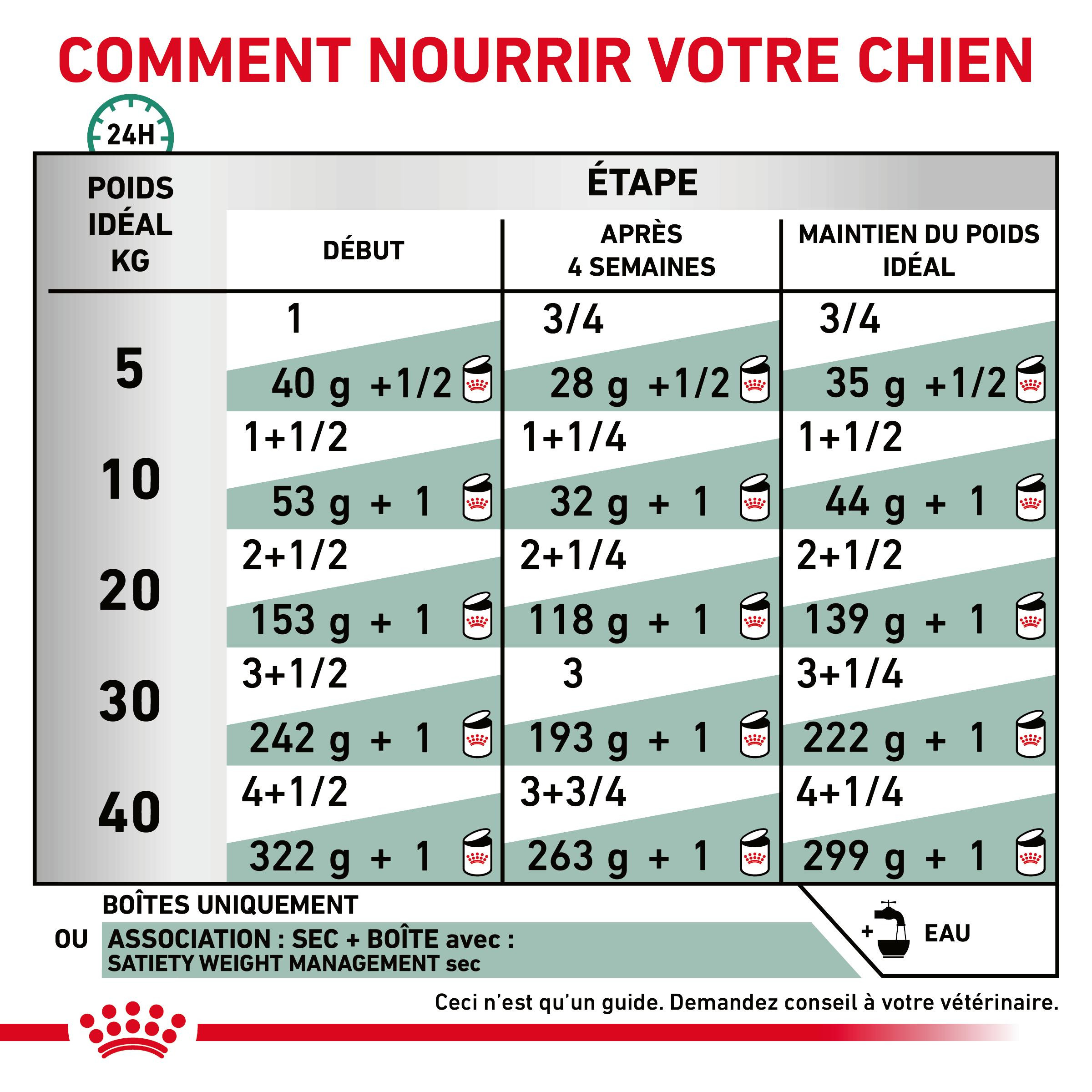 Comme il s'agit d'un aliment diététique Royal Canin, il est important de ne le donner à votre animal que si votre vétérinaire vous l'a recommandé. Si vous passez à cet aliment, faites-le progressivement sur une période de 7 jours. Pesez soigneusement chaque jour la quantité appropriée, surtout si vous combinez des croquettes et des pâtées.