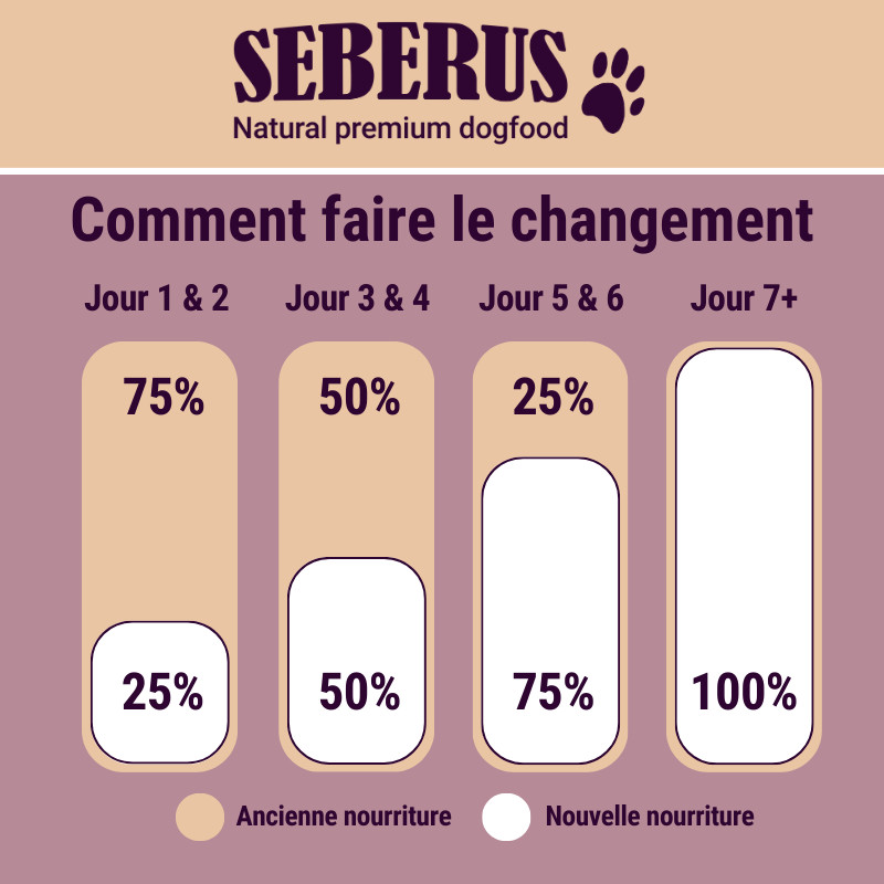 La nourriture pour chiens Seberus est une nourriture naturelle et savoureuse de qualité supérieure avec du poulet, de l'agneau ou du saumon. Seberus convient à tous les chiens adultes. Les aliments Seberus ne contiennent pas de céréales et sont donc particulièrement adaptés aux chiens qui souffrent de sensibilité alimentaire. Seberus est également riche en viande et contient des glucides de haute qualité provenant des pois et des pommes de terre. Cela donne à votre chien tout ce dont il a besoin pour une journée pleine d'énergie. Les vitamines et minéraux présents aident à renforcer le système immunitaire et à réguler la digestion des graisses. Bref, une alimentation très équilibrée et nutritive pour votre chien.
